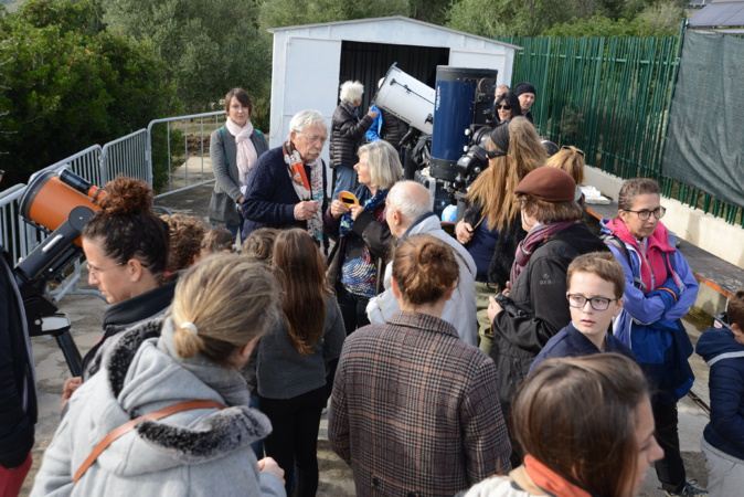 Ce 11 novembre la plus petite planète du système solaire est passée dans l’ombre de notre étoile. Un phénomène rare qui ne se produit qu'une dizaine de fois par siècle et que une centaine d'ajacciens ont pu observer grâce à l'ouverture extraordinaire du club ajaccien d'astronomie de Fignola. Même si à cause du mauvais temps à 13h35 on n'a pas pu observer le début du passage de Mercure devant le Soleil, vers 14h15 et pendant près de deux heures, le ciel s'est miraculeusement dégagé permettant ainsi aux visiteurs d’apercevoir le petit point noir de la planète à contre-jour sur le disque solaire.