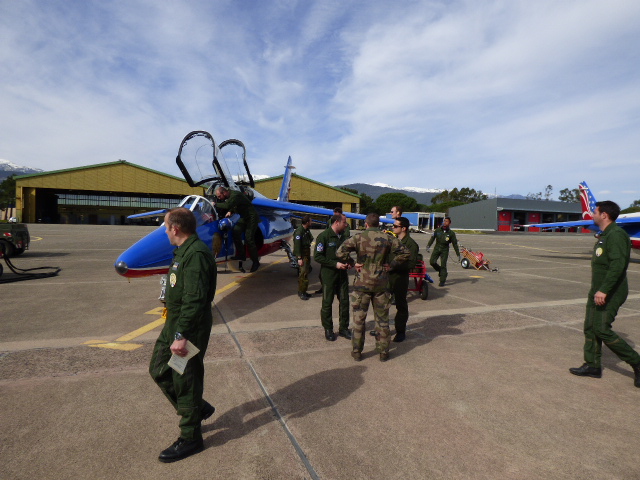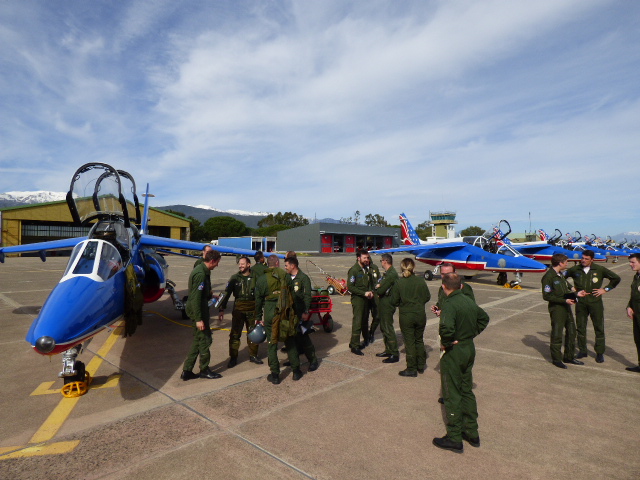 9h45, sur le tarmac de la base aérienne, les pilotes des huit aéronefs accompagnés de leurs mécaniciens, se dirigent vers leurs alpha jets parés de leurs plus beaux atours. Les dérives étoilées récemment peintes ne sont pas sans rappeler la très prochaine mission de représentation que vont mener sur le sol nord américain ces pilotes d’exception. Du 17 mars au 6 mai prochain, la patrouille de France survolera de nombreux états américains et des points caractéristiques comme le grand canyon ou encore la statue de la liberté. Les pilotes français rencontreront leurs homologues américains des patrouilles Thunderbirds ou Blue angels. Le voyage vers le grand Ouest se fera par légers sauts de puce entre la France, l’Islande, le Groëland, puis le Canada avant de pénétrer les frontières américaines et porter haut les couleurs de l’aéronautique militaire française
