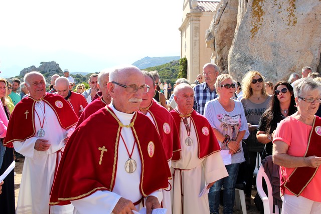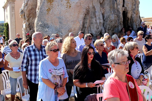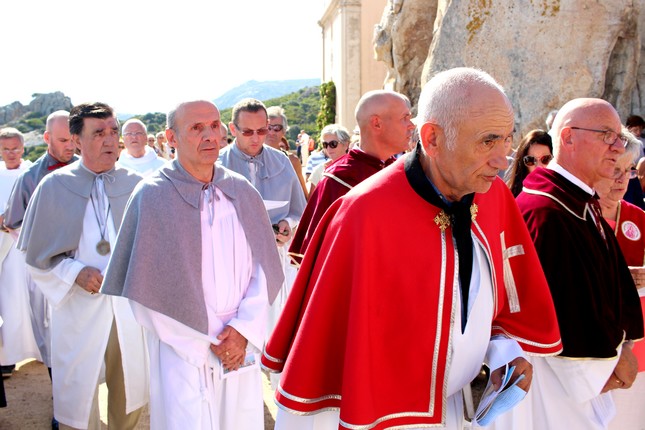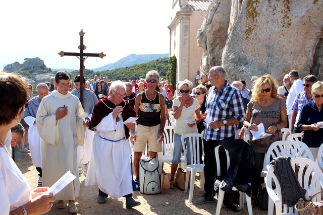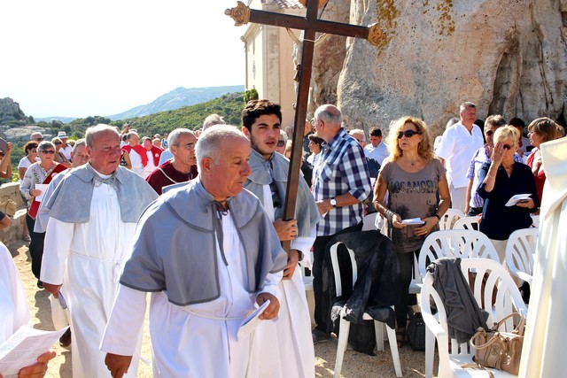 Les confrères de Saint Antoine et Saint Erasme mais aussi de ceux venus des quatre coins de la Balagne et de Lucciana, entourés de l'abbé Valéry et du diacre Thierry Del Piero partaient en procession de la petite chapelle pour rejoindre sur le sanctuaire l'autel tout en pierre où devait être célébré l'office.