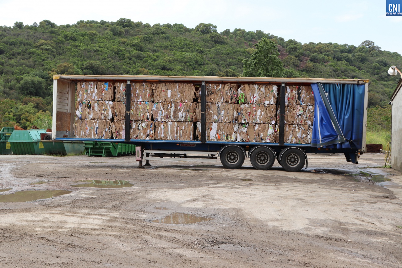 Pour le verre et le carton, le papier, destination Corse Euro déchets. Après la pesée du camion, ou chaque catégorie de déchets sera stockée, compressée, puis quittera l’île en bateau pour être revalorisé dans différents centre de traitement continentaux.