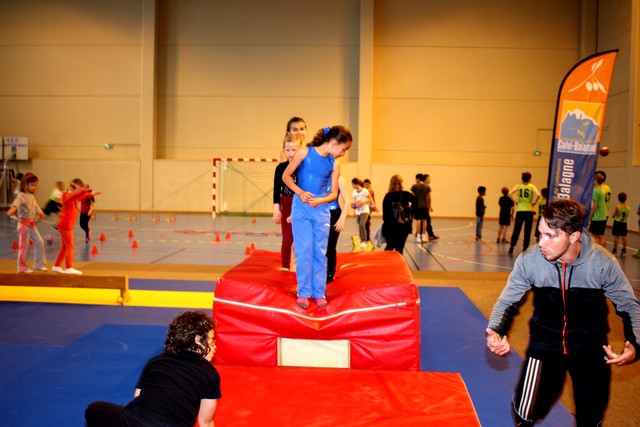 Dès 10 heures David Jeanpetit, directeur du complexe sportif de Calvi - Balagne réalisé et géré rappelons-le par la communauté de communes de Calvi - Balagne souhaitait à tous la bienvenue et invitait le public à quitter les gradins pour se rendre directement sur le parquet du gymnase où plusieurs ateliers en accès libre étaient proposés: Handball avec l'AJ Calvi, basket-ball avec le BB Calvi, Danse de l'association I Danse, Baby Gym de l'Association gymnique de Balagne et du Taekwondo des "Dragons bleus".