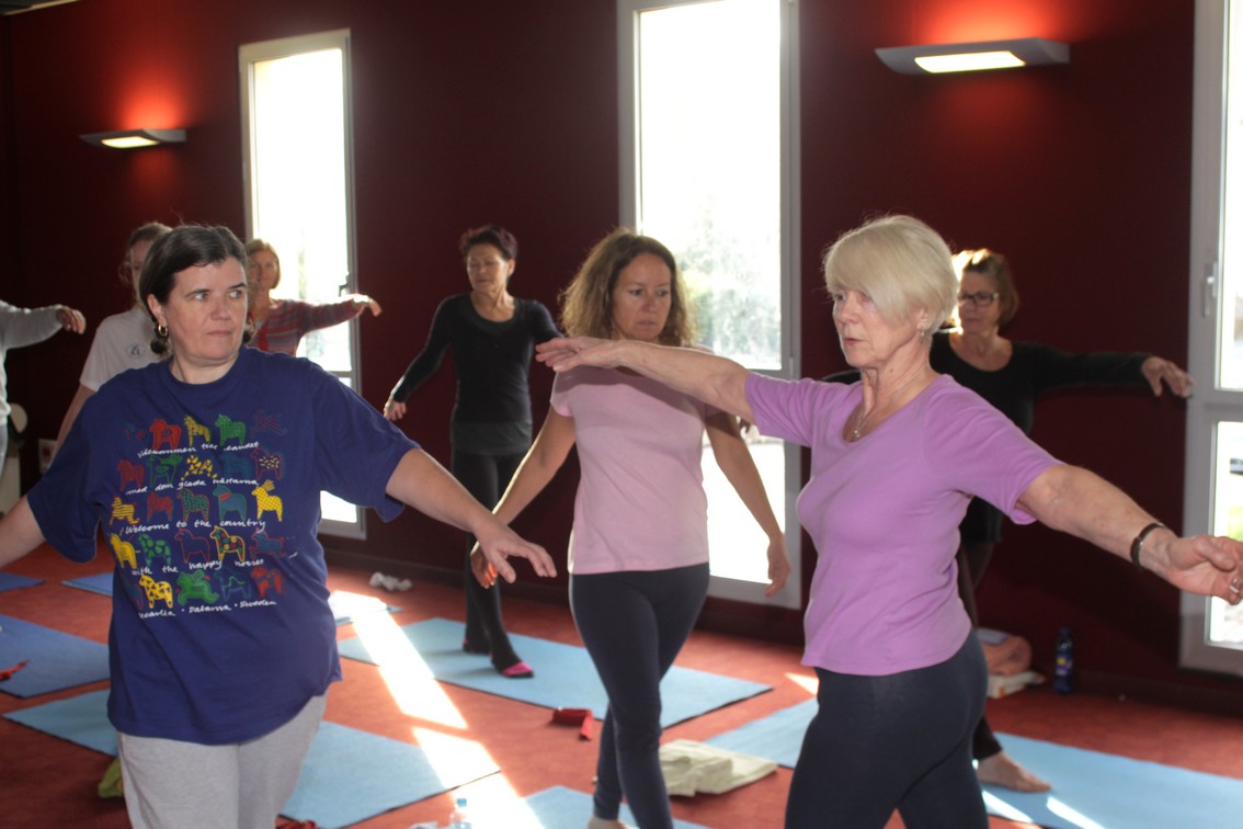 Le cours débutait par quelques minutes de détente, allongé au sol. Ce n’est qu’une fois la respiration calmée que pouvait véritablement débuter la séance avec des mouvements appropriés, en position assise, debout ou allongée ».