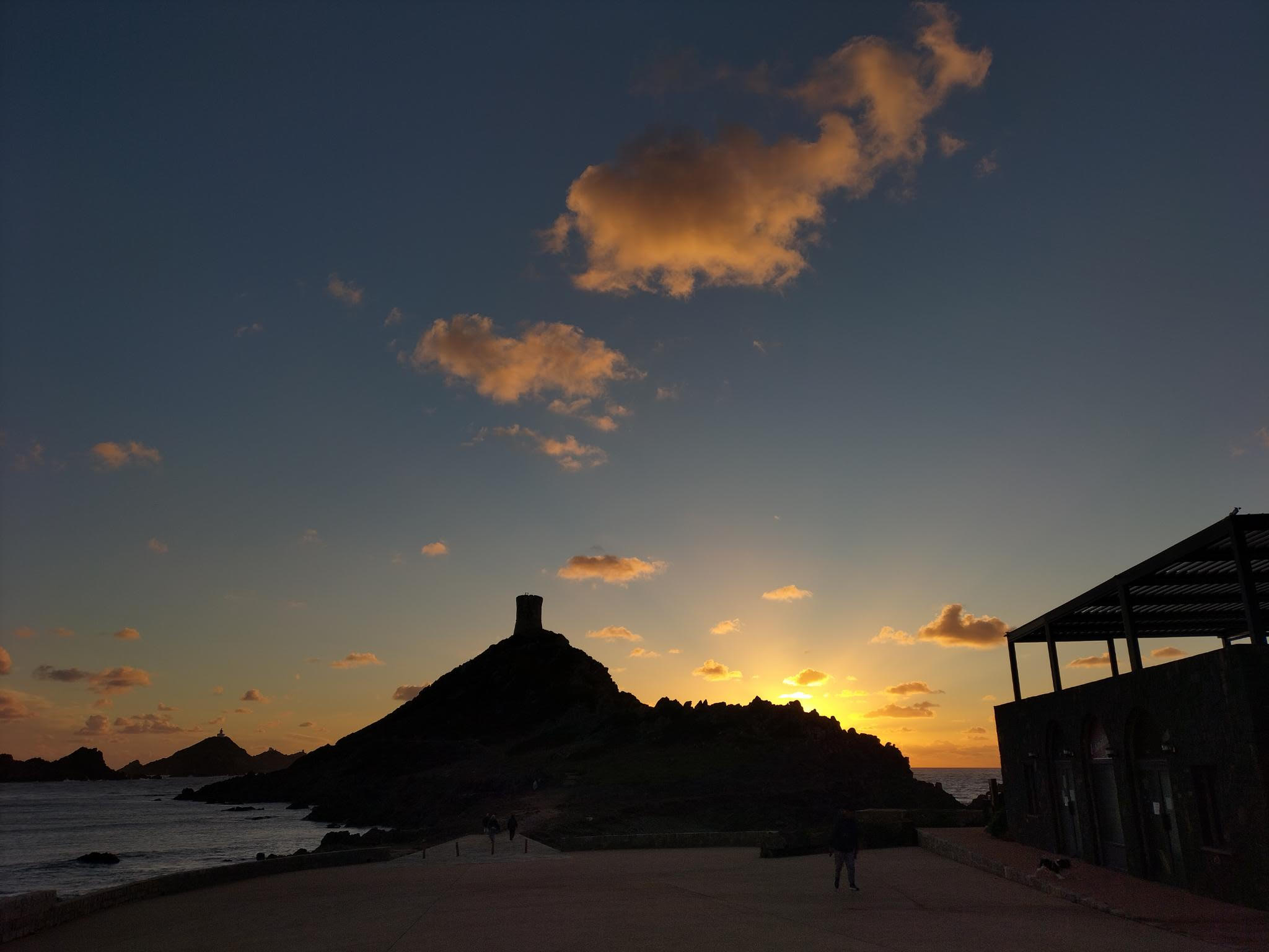 À l’heure où le soleil s’incline doucement derrière la silhouette majestueuse de la tour génoise, les îles Sanguinaires se parent de leurs plus belles couleurs. Un spectacle éternel entre ciel et mer, à la pointe de la Parata, où le jour embrasse la nuit dans un dernier éclat d’or.