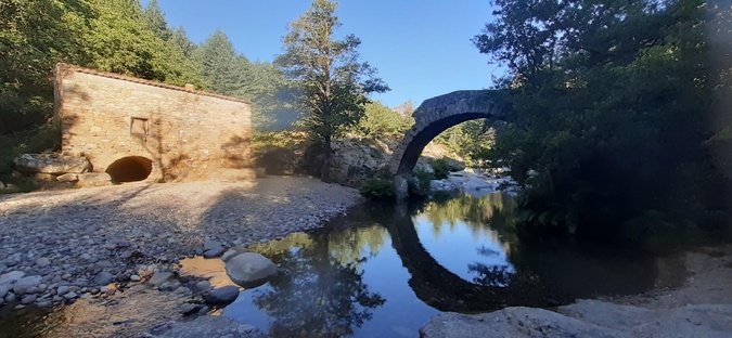 Au-dessus d'Albertacce, dans la vallée du Viru, U Ponte Muricciolu construit entre le Xllle et le XVlle siècle,,détruit en partie par la tempête Ciaran en 2023, et son moulin, dont la construction remonte aux années 1800, font encore l'amiration des randonneurs comme Philippo Paulo, auteur de cette belle image sur laquelle on devine, en arrière-plan, la Paglia Orba.
