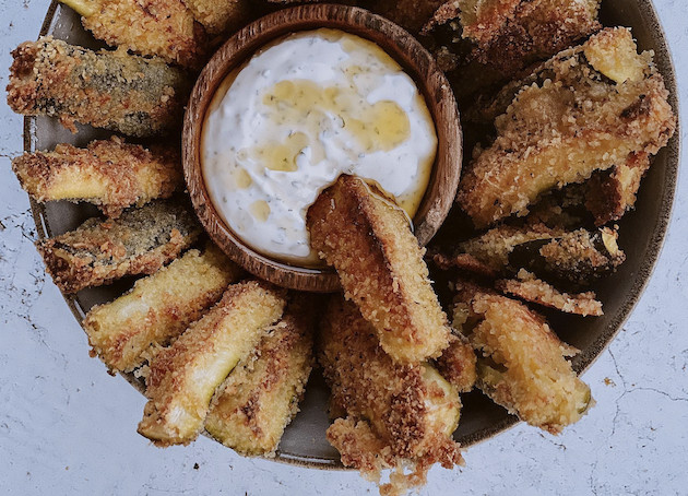 6/ Enfournez à 200°C pendant au moins 30 minutes jusqu'à ce que les courgettes soient bien dorées.