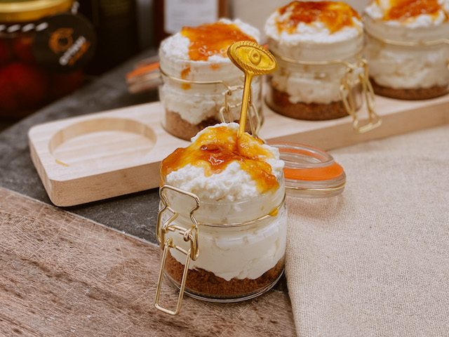 5/ placez votre mousse délicatement sur les spéculos puis terminer par de la confiture d’orange.