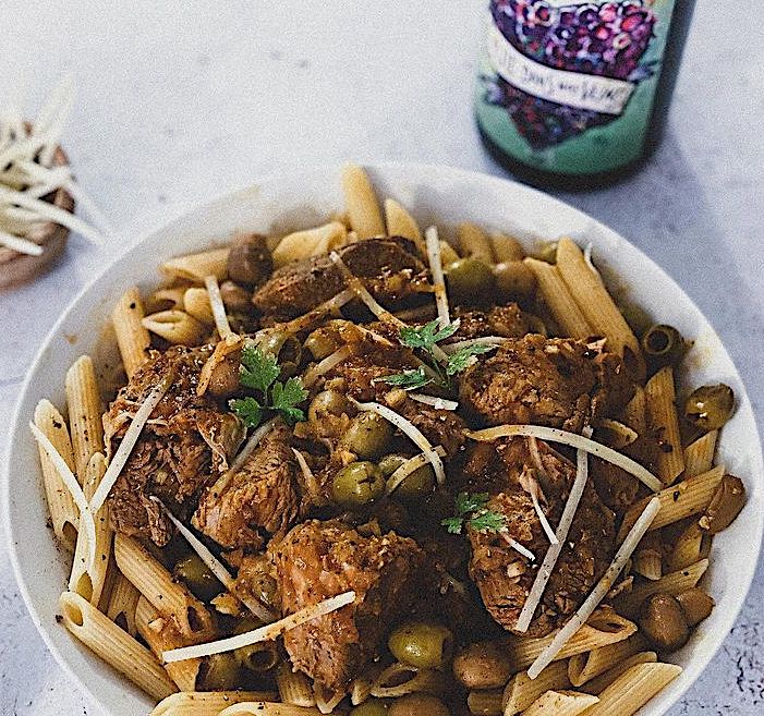 "On révise ses classiques avec ce délicieux sauté de veau aux olives et champignons accompagné de penne et parmesan.