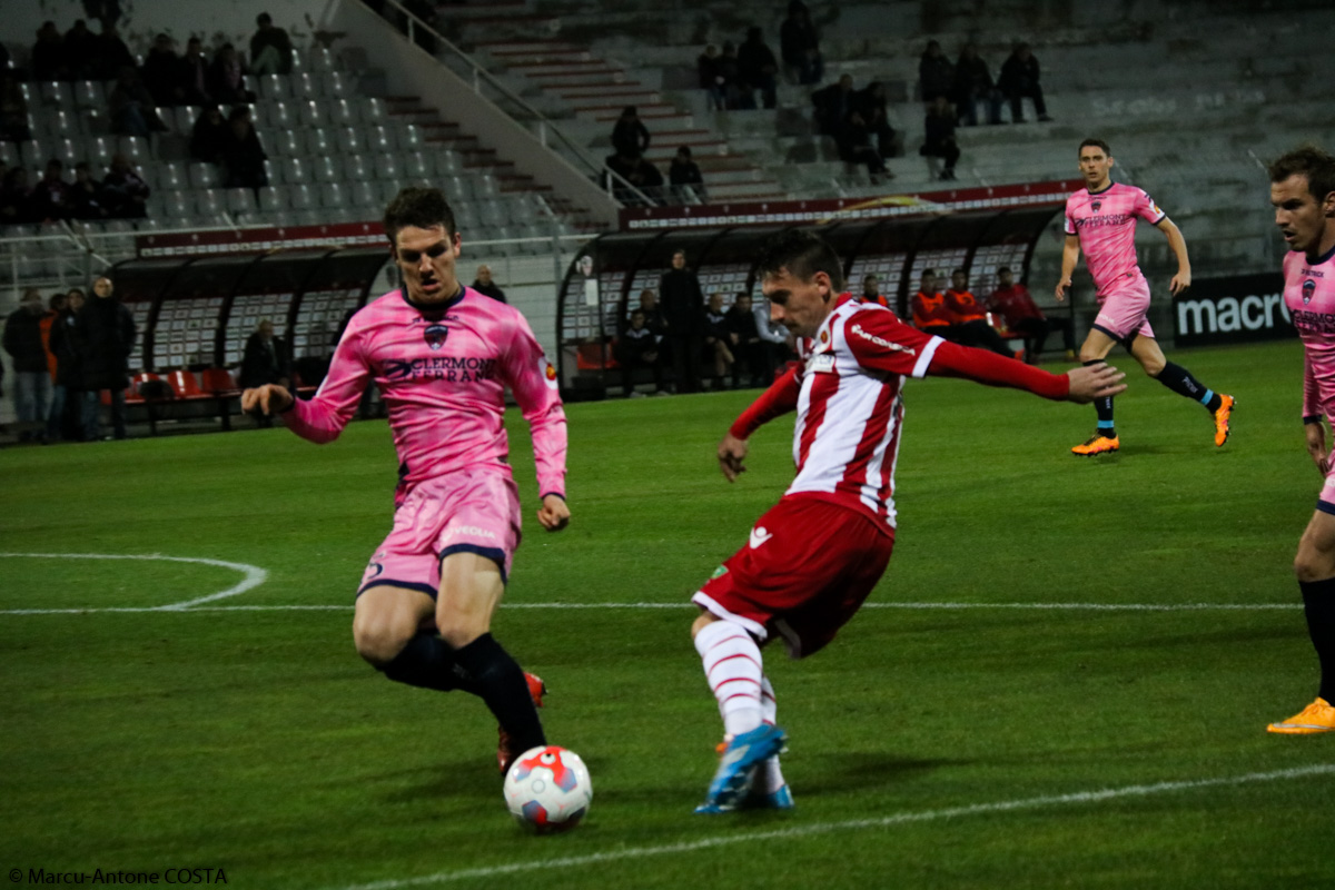 En effet mis à part sur un corner la tête de Diedhiou renvoyé sur la ligne par un défenseur ajaccien, les Auvergnats monopolisent le ballon mais s'exposent aux contres meurtriers des attaquants locaux très inspirés et par là même les plus dangereux.