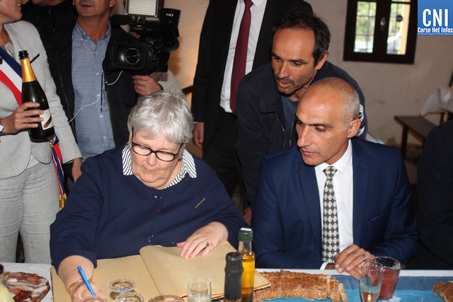 A l'issue, Ange Santini remettait à Madame la Ministre la Médaille d'honneur de la Ville frappée au nom de Jacqueline Gourault et un ouvrage sur Calvi, avant de l'inviter à signer le livre d'or.