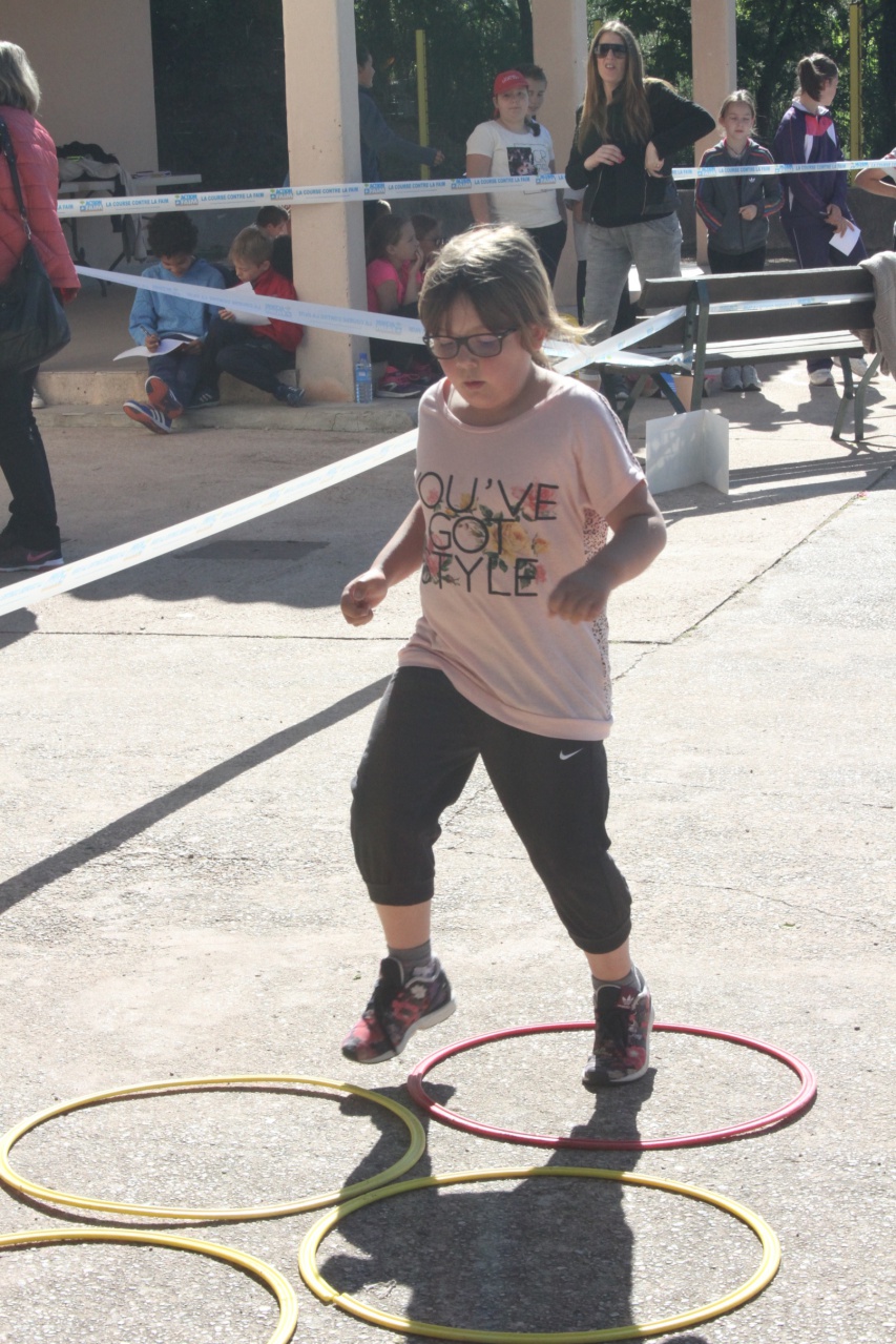 C’est donc déterminés et plein de bonne volonté qu’ils découvrent dans leur cour de récréation habituelle, un parcours tout plein de surprises. Par groupe de 10, des plus petits aux plus grands, ils se sont élancés sur un parcours d’une quinzaine de minutes. Si les premières minutes les enfants sont plein d’énergie, la fatigue se fait vite sentir. Mais les jeunes écoliers, tous conscients que chaque tour terminé c’est quelques euros de plus de gagnés pour agir contre la faim, persistent et mettent toute leur force pour aller jusqu’au bout. « Chaque tour que je fais rapporte 30 euros, dira Savéria, 9 ans, alors même quand j’étais fatiguée, j’ai fait encore un tour pour rapporter plus d’argent. »