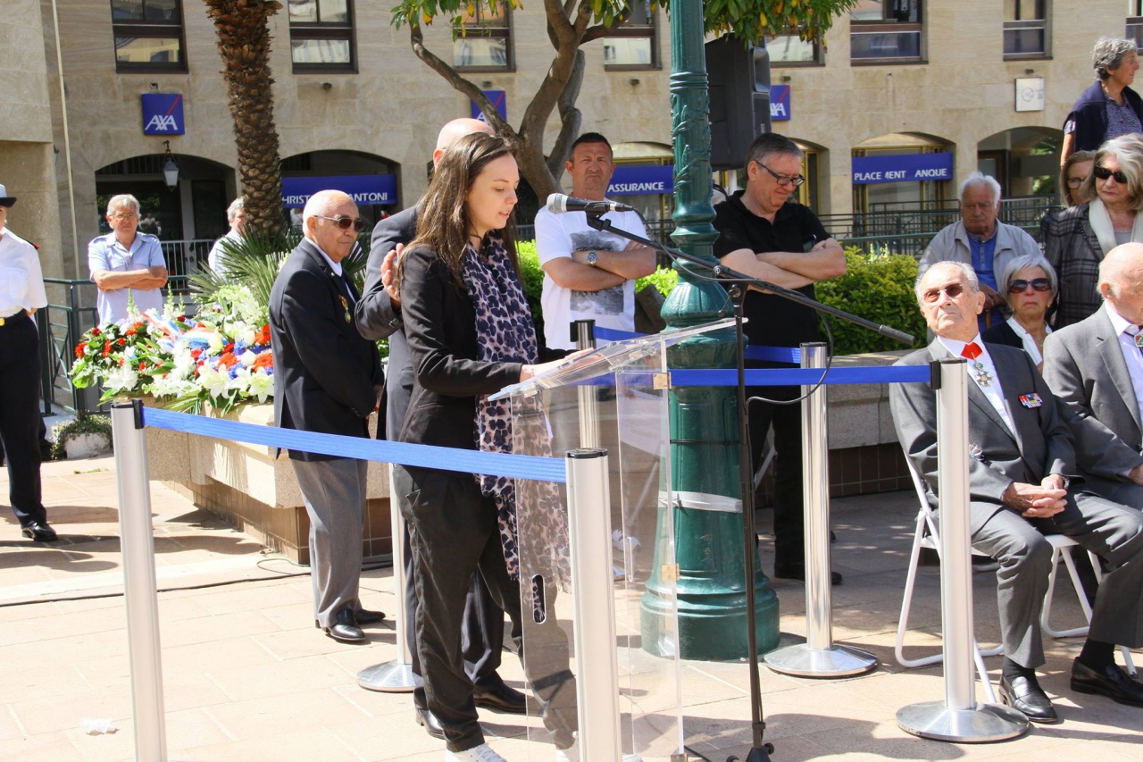 Puis Françoise-Marie de Gentile, élève de terminale au lycée Laeticia lira l'ordre du jour n°9 du Général de Lattre de Tassigny annonçant aux armées le 9 mai 1945 à Berlin la «Victoire radieuse de printemps qui redonne à la France la Jeunesse, la Force et l'Espoir».