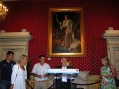 Pour leur premier jour de visite en Corse, une délégation de huit membres* du Parlement Suédois, en vacances pour une semaine en Corse dans le cadre d’un séjour linguistique et accompagnée de leur professeur de français Christophe Luciani, a été reçue lundi soir par le maire d’Ajaccio Simon Renucci dans les Salons Napoléoniens de la mairie.