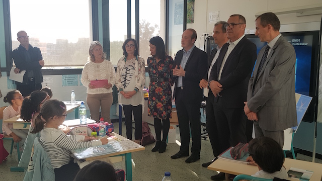 Ce mardi 8 octobre, c’est une journée un peu particulière qu’ont vécu certains élèves de CM1 de l’école Saint-Jean Castel Vecchio ! La maîtresse de classe n’était pas seule au tableau, mais était accompagnée de Laurent Marcangeli, maire d’Ajaccio, François Tatti, président du Syvadec, Jean-Pierre Giordani, vice-président du Syvadec et délégué de la prévention, mais également Didier Mamis, directeur départemental délégué Drdjscs venu représenterJosiane Chevalier, la préfète de Corse, Julie Benetti, rectrice de l’académie de Corse, Brigitte Bartoli, directrice de l’école Castel Vecchio, Virginie Frantz, directrice académique des services de l’éducation nationale de la Corse-du-Sud, Bernard Capelli, IA sciences de la vie et de la terre et Marc Tomasini, animateur EcoScola Syvadec.