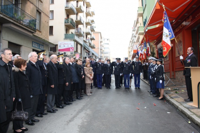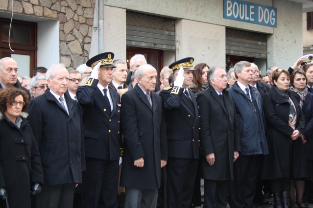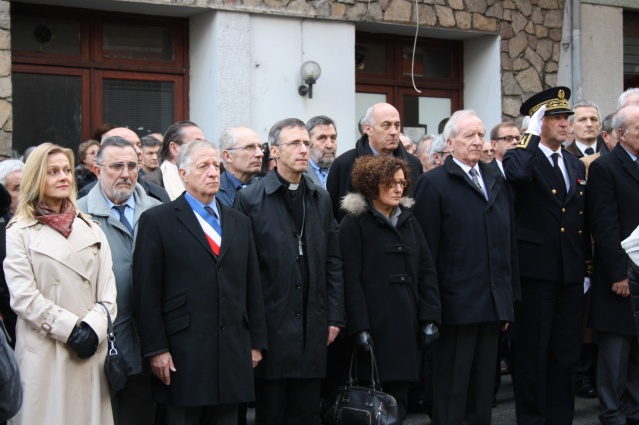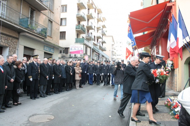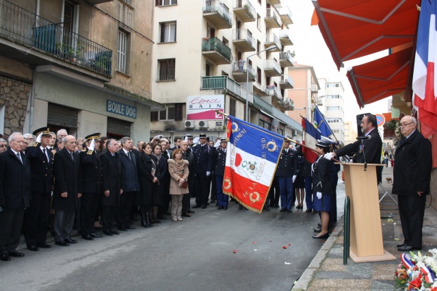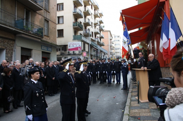 Le préfet de Corse a également évoqué l’engagement professionnel de Claude Erignac, son engagement, fondé sur l’utilité commune selon le principe proclamé par la Déclaration des Droits de l’Homme, mais aussi ses actions et sa finalité dans la mission que le Gouvernement lui avait confié au nom de la Nation : « Gardien de la légalité, responsable de la paix civile, il fut aussi attentif aux personnes, car pour lui, la République était avant tout une République solidaire. Cela l’a amené à être disponible pour tous ceux, sans distinction, qui avaient besoin de compréhension, d’écoute et d’appui. Quinze ans après, nous voulons saluer un préfet qui avait mis son énergie et son talent au service de la Corse, cette terre qu’il avait appris à aimer, parce qu’il représentait l’Etat au travail, parce que son ambition était d’y faire vivre les lois et les valeurs de la République. Quinze ans après, son engagement prend tout particulièrement son sens parce que la Corse est confrontée à une crise économique et à des difficultés sociales qui fragilisent la cohésion de la communauté insulaire ; parce que la société corse est troublée et inquiète en raison du fléau de la grande criminalité ; parce qu’il se développe, chez certains, un sentiment d’incompréhension par rapport à la France continentale, qui les pousse à douter de la République. » Des gerbes ont été déposées par le préfet Strzoda et les représentants de la Collectivité territoriale de Corse, des Conseils généraux de Corse-du-Sud et de Haute-Corse et de la municipalité d'Ajaccio, au pied de la plaque apposée rue Colonel Colonna d’Ornano. On notait la présence du Préfet de Haute-Corse aux côtés de Patrice Strzoda, Dominique Bucchini, Simon Renucci et son premier adjoint Paul-Antoine Luciani, Nicolas Alfonsi, sénateur de la Corse du Sud, Jean-Jacques Panunzi président du Conseil Général de la Corse du Sud, Monseigneur de Germay, Evêque de la Corse, Maria Giudicelli, conseillère exécutive, F. De Peretti, du cabinet de Paul Giacobbi, Laurent Casasoprana et Nathalie Ruggeri, conseillers généraux, Marie-Antoinette Brunelli-Santoni, conseillère territoriale, Michel Barat, recteur de la Corse ainsi que l’ensemble du corps préfectoral, les pompiers, la police et la Gendarmerie.