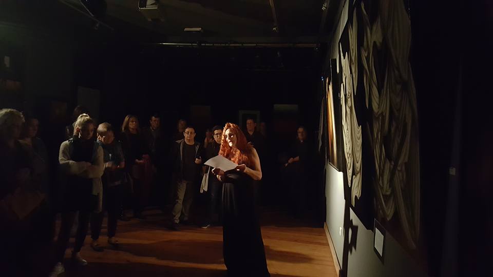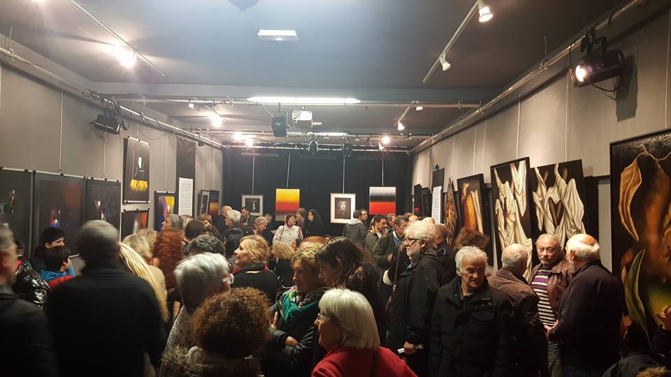 Malgré le froid et les interminables embouteillages, le public avait répondu présent, ce jeudi soir pour le vernissage de l’exposition baptisée « La manière noire », dans les locaux de l’espace culturel « Locu Teatrale ». Parents, amis, passionnés d’art pictural ou curieux ont été servis. En guise de préambule, un « scénario » concocté par le trio d’artistes peintres, des textes lus par Marianna Nativi précédés d’un chant empruntée à la mélodie « Senti Figliolu » et modelé de façon à coller au thème. Sur un fond d’obscurité, on entendra, ainsi, évoquer le thème du noir sous différents aspects : la mystique chrétienne, le shivaïsme, le Soufisme, l’Hermétisme, la pensée grecque, égyptienne et jusqu’à la Science « Un trou noir est la porte vers un autre Univers (Stephen Hawking). Au chapitre des auteurs, nous citerons Saint-Jean de la Croix, Saint-Augustin, Kabir (« l’artiste révèle l’âme suprême partout où s’attache l’esprit »). Un chevalet, une main qui s’amuse sur une toile vierge, et là où les mots inspirent l’écrivain, les notes le musicien, le langage des couleurs inonde d’une beauté ineffable le peintre.