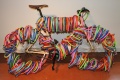 Il n’est donc pas surprenant de voir la bicyclette dans l’imaginaire créatif des artistes d’aujourd’hui. L’exposition du musée Fesch présente dans les salles du deuxième étage une dizaine d’œuvres. Elle s’ouvre sur le seul vrai vélo de l’exposition, le vélocipède du prince impérial (1869), se poursuit par une série d’œuvres à la fois ludiques et insolentes comme la bicicleta de Corrado Bonomi (2009), le vélo indien de Jean-Michel Othoniel (2011) ou la bicyclette et les cadenas de Richard Fauguet (2010). Elle s’achève sur une exposition de photographies de Pierre Gayte prises en corse, mettant en scène des vélos aux mains d’insulaires, soulignant l’importance de l’évènement sur l’île.