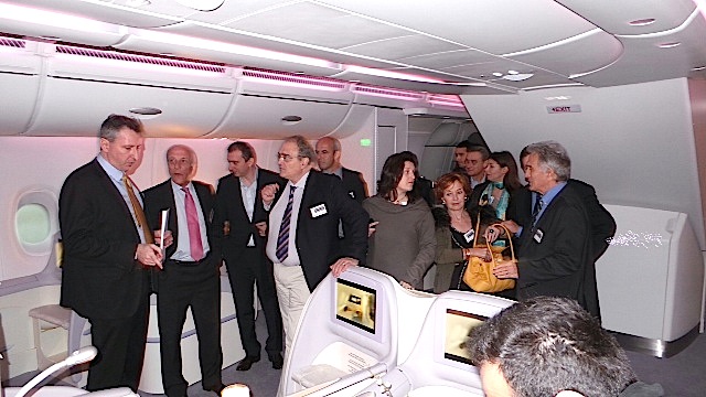 Explications fournies et détaillées sur du montage qui s'opère à partir d'éléments qui viennent des quatre coins d'Europe. Visite de la cabine de pilotage. Puis de la maquette grandeur nature, impressionnante non seulement par la taille mais aussi par la qualité et le confort de l'Airbus. Joël Boff directeur des ventes Airbus pour l' Europe, explique que l'objectif de vente de 600 appareils sera atteint cette année. Jean-Yves Leccia directeur de Corse Composite, qui n'est pas loin, souligne que la société insulaire a un programmme très chargé avec Airbus et et qu'elle fournit des lots pour 80 avions chez ATR ce que confirme le Pd-g Filippo Bagnato.