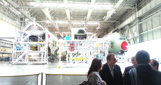 Quelques minutes plus tard, Jean-Paul Miquel, responsable de la chaîne de production de l'Airbus A 380, où son employés plus de 1 000 persones, accueillait Paul Giacobbi et les insulaires dans le hangar de 500 m de long où le futur monstre des airs se pare de ses plus beaux atours.