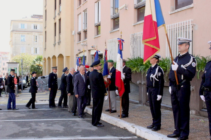 En l’absence du préfet, c’est par la voix d’Olivier de Mazières, sous-préfet et coordonnateur pour la sécurité en Corse, que le message a été délivré. Face à lui, ce sont une cinquantaine de policiers, ainsi que des élus locaux, à l’exemple du président de l’Assemblée de Corse, Dominique Bucchini, ou du nouveau président du conseil départemental de la Corse-du-Sud, Pierre-Jean Luciani, qui ont écouté, impassibles, cet hommage aux forces de l’ordre. « Vous êtes vous-mêmes les gardiens de la République, protégeant nos concitoyens contre toutes les menaces, au quotidien, comme face à des circonstances exceptionnelles. Vous accomplissez ainsi une noble mission, une mission essentielle. Une mission difficile aussi, je le sais. La violence contre laquelle vous vous dressez vous oblige à faire preuve de courage et de dévouement », a continué le sous préfet.