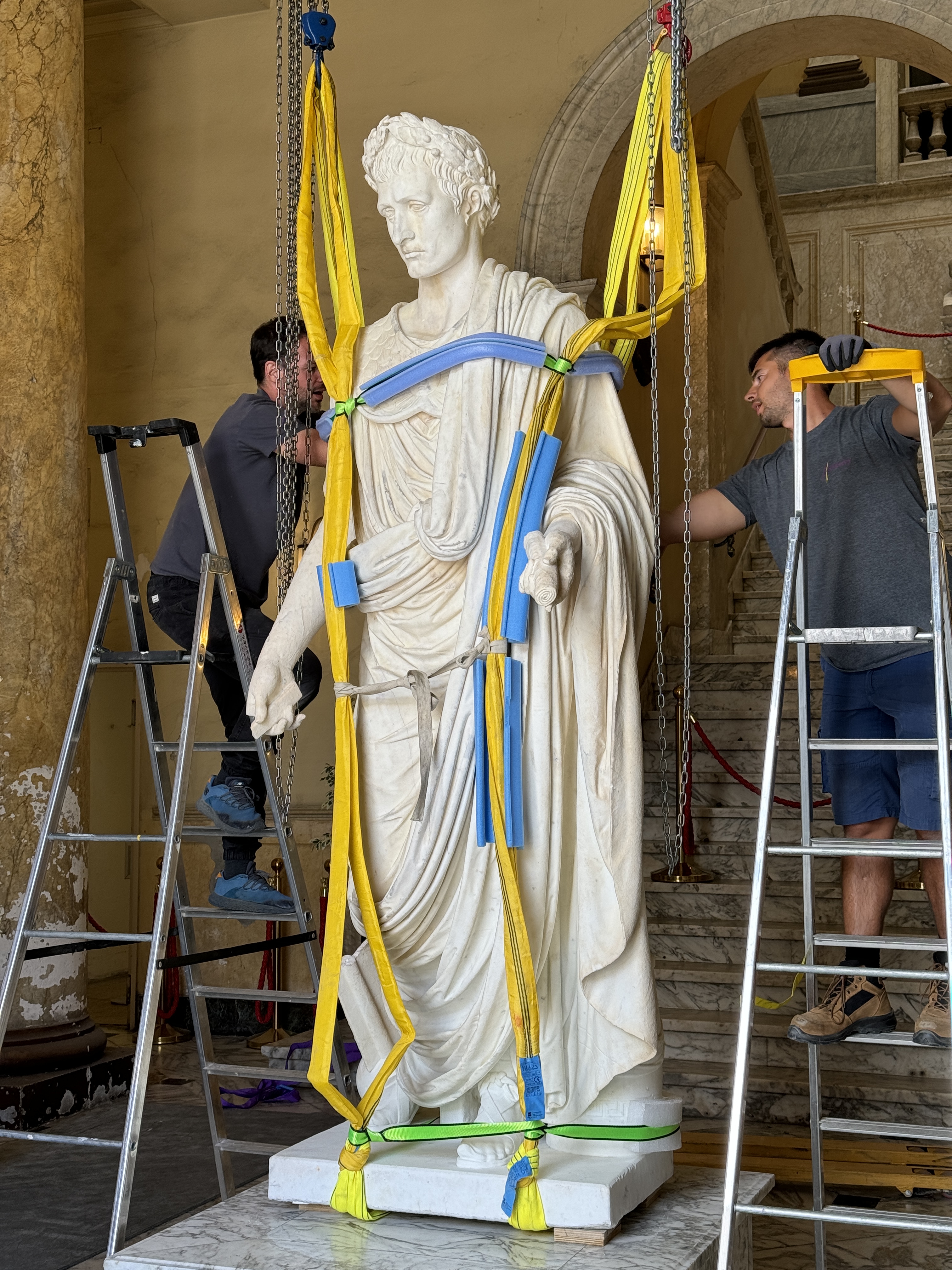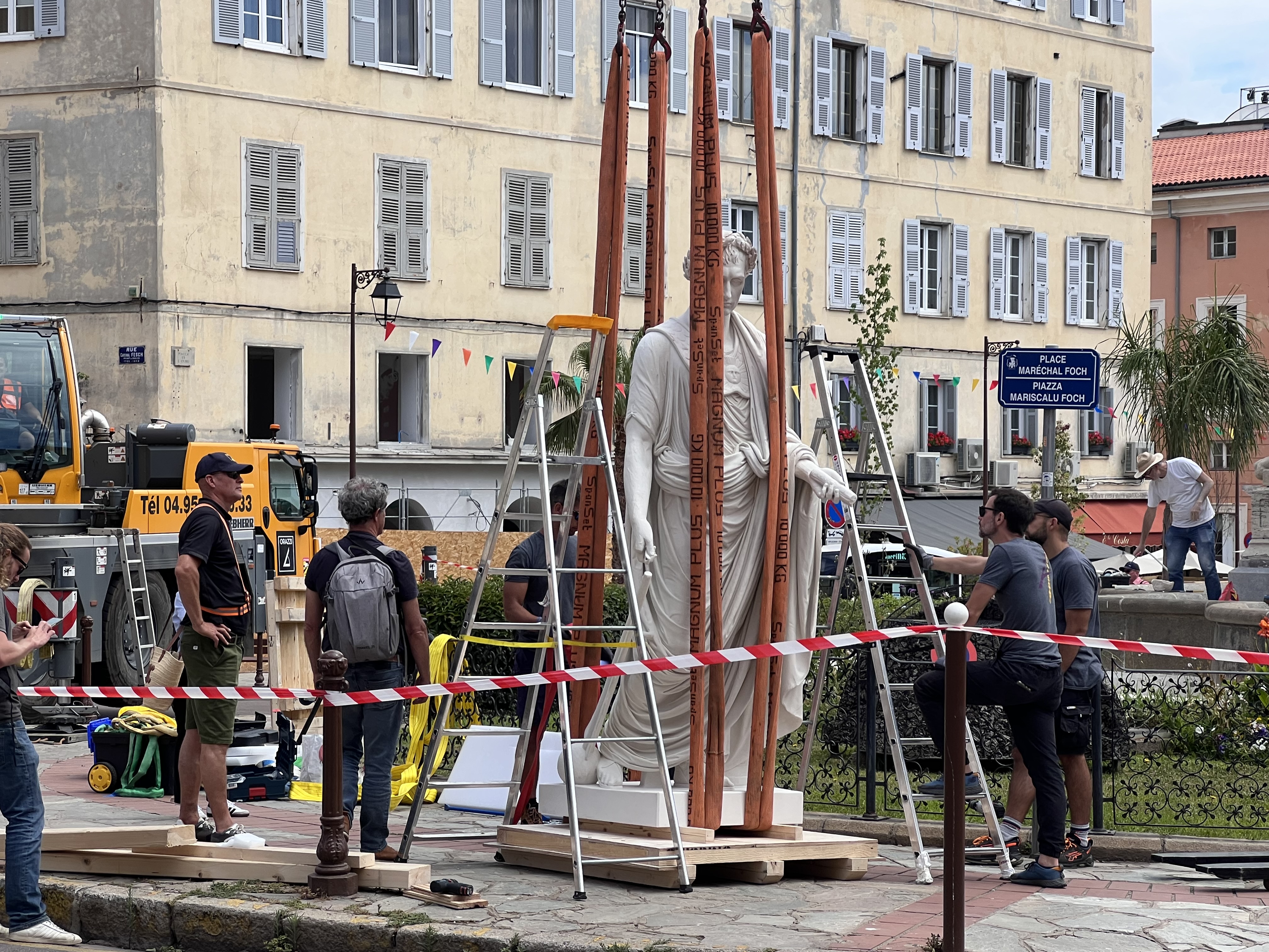 Le déplacement de la statue dans l’Hôtel de Ville visait principalement à assurer sa sécurité. « Cette œuvre a été sculptée à l’origine pour investir la cour intérieure d’un palais. Son marbre, de qualité moyenne, ne la prédisposait pas à être installée aussi longtemps en extérieur », a expliqué Marie-Laure Mattei Mosconi, directrice du Patrimoine de la Ville d’Ajaccio.