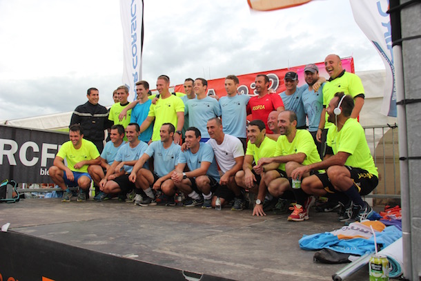 Emotion toujours quand les pompiers marathoniens demandent, le temps d’un instant, à remonter sur scène afin d’immortaliser le moment pour l’un de leurs collègues lui-même touché par la maladie.
