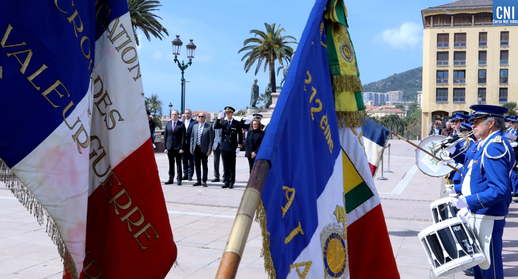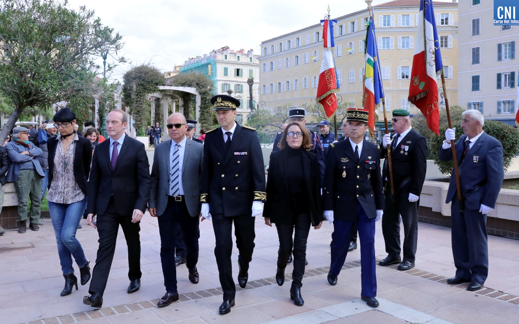 Dès la mise en place terminée des porte-drapeaux, des délégations d’associations d’anciens combattants, des autorités civiles et militaires et de l’ensemble de la musique municipale, le représentant de la préfecture de Corse est arrivé avec les personnalités qui l’accompagnaient.