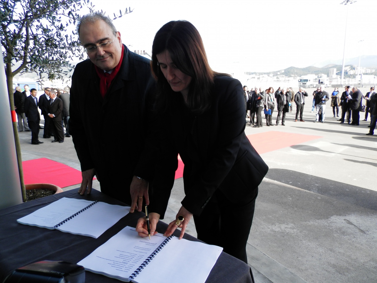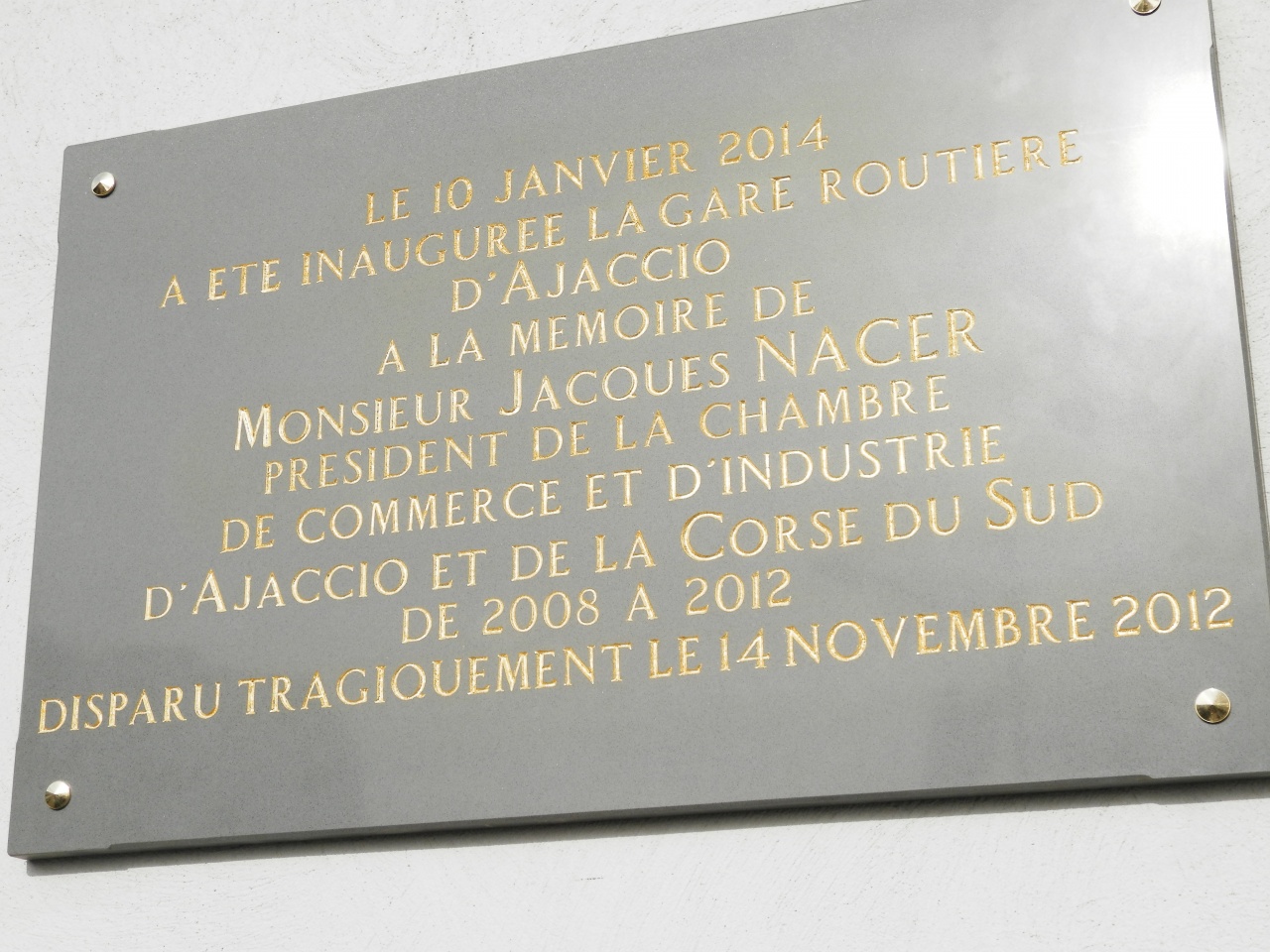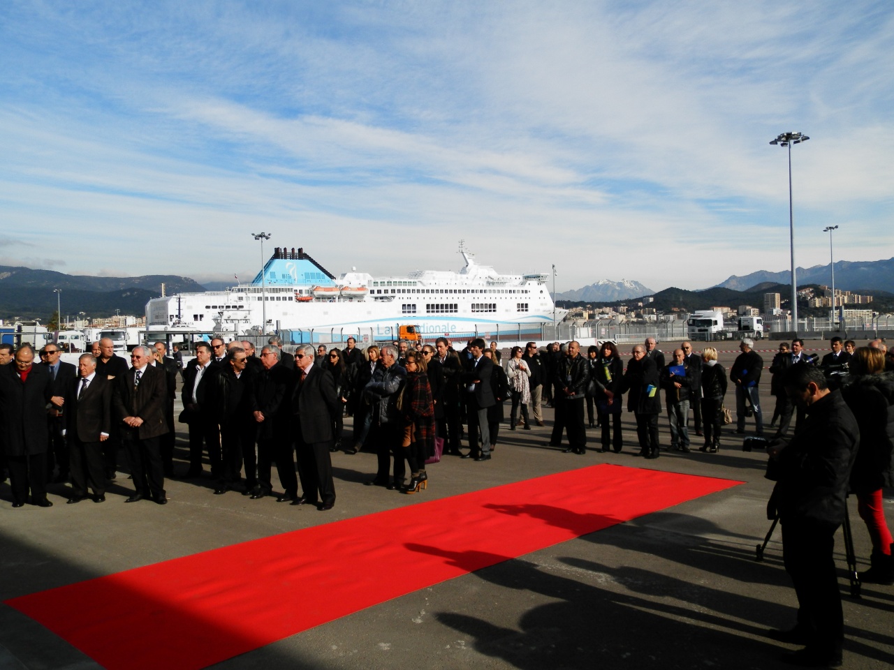 Avant d'inviter le public venu en nombre au lancement de la nouvelle gare Routière et Cargo, il ne pouvait être autrement que de découvrir la plaque commémorative en l'honneur de l'homme qui a porté avec conviction le développement maritime de la Corse du Sud et de son port de commerce.