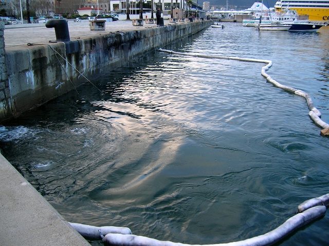 Malgré le barrage anti-pollution, des nappes résiduelles d'hydrocarbures se sont répandues dans le port