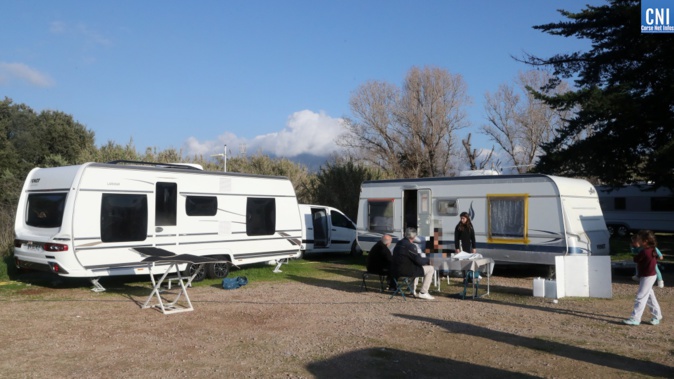 Les gens du voyage ont établi leur campement à Campo dell'Oro, sur l'ancien parking relais (Photo : Michel Luccioni)