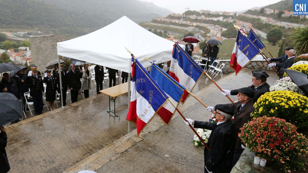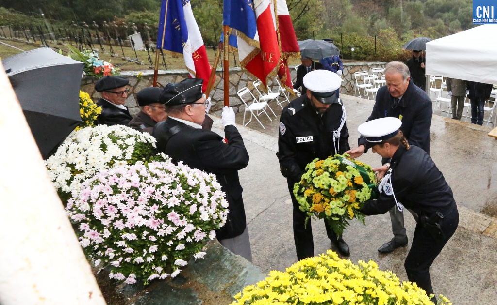 A Ajaccio, deux cérémonies abrégées par les pluies diluviennes qui se sont abattues, au "Canicciu" et à Saint Antoine ont été dédiées, comme partout à travers l'île, au souvenir pour tous les soldats morts au combat honorés ce samedi par autorités civiles et militaires