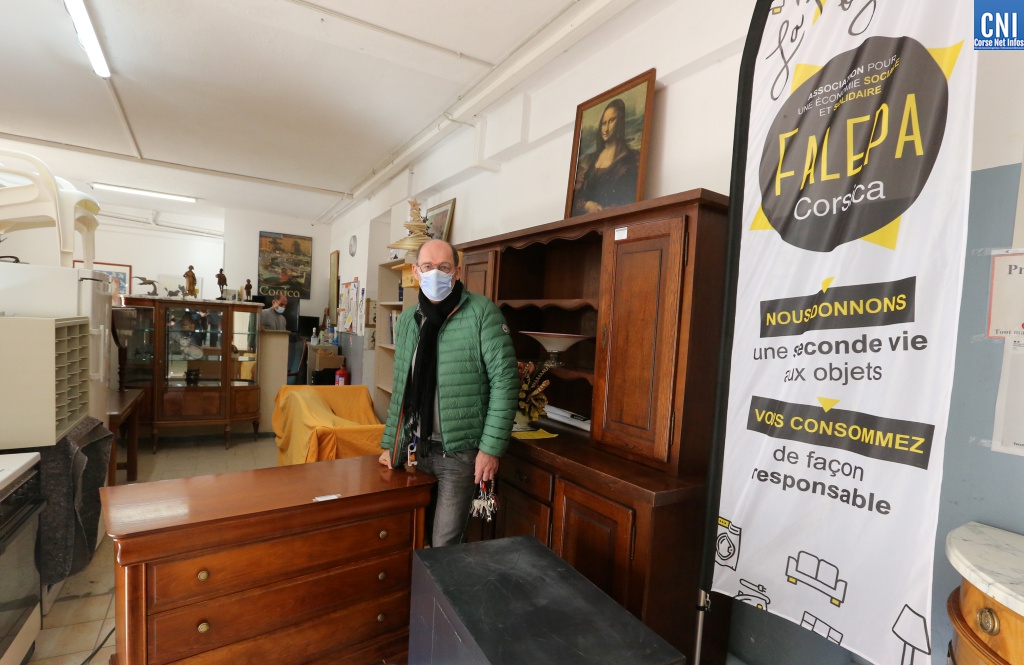 « Tout ce qui est là aurait dû aller à la décharge » commente Patrice Pellegrin, directeur de la Falepa, au milieu des meubles, vêtements, livres et autres objets qui occupent les quelque 200 mètres carrés de la Recyclerie d’Ajaccio. « C’est de la folie, quand on voit ce que les gens jettent…» se désole t-il. C’est pourquoi la Falepa, depuis 15 ans, s’attelle à offrir une seconde vie à ces produits, tous issus de dons de particuliers, d’associations, d’entreprises ou d’institutionnels, en les proposant, à petits prix, aux Ajacciens. « L’idée est d’aider les gens qui n’ont pas beaucoup de moyens » indique Patrice Pellegrin.