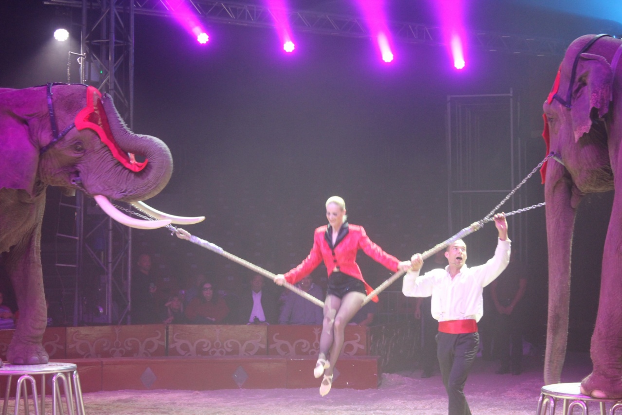 Ce sont 2h30 de pur plaisir que nous offrent cette année encore tous les artistes du festival du cirque. Un spectacle magnifique, tout en couleurs, avec des numéros aussi divers que variés. Un véritable show où se mêlent la musique, les costumes, le rire, l’émotion… Le rire omniprésent, pour le plus plaisir des enfants, avec parfois de réels numéros de clowns, parfois juste de petits intermèdes pour faire patienter le public entre deux numéros. De la voltige avec des numéros de trapèze époustouflants, des numéros de trampoline ahurissants, un florilège de sauts, triple sauts et autres sauts périlleux. Sans oublier les célèbres félins de cirque que sont les lionnes, un lion majestueux, les robustes éléphants, les chats affectueux.
