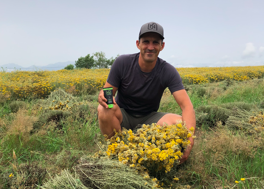 Il faut près de deux ans pour obtenir les coûteuses homologations. Les premiers produits, testés dans des laboratoires spécialisés dans les soins pour sportifs, sortent en juillet 2021 : un gel utilisable avant, pendant et après l’activité sportive ; un baume anti-douleur et réparateur… A la base, quelques plantes connues pour leurs vertus : ortie, ciste, genévrier et bien sûr immortelle.