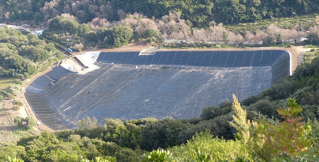 Située sur la commune d’Ocana, près d’Aiacciu, la réserve de compensation du Prunelli mis en service en 1989 fait actuellement l’objet d’un vaste programme de sécurisation et de confortation à la suite de fortes dégradations dues essentiellement au vieillissement de sa géomembrane, principal élément du dispositif d’étanchéité pour ce type de bassin.