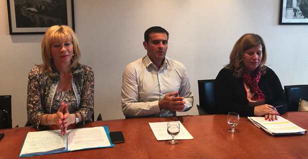 Le président du groupe Per l'Avvene à l’Assemblée de Corse, Jean-Martin Mondoloni, entouré des deux conseillères territoriales, Annette Pieri et Marie-Thérèse Mariotti.