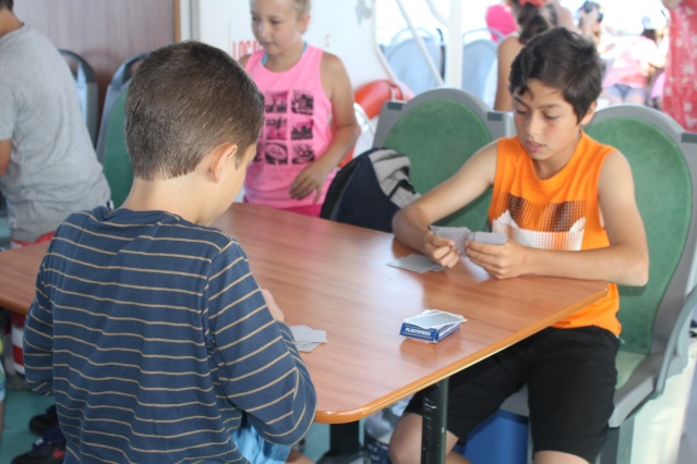 Après un réveil matinal, le rendez-vous est donné à 8 heures sur le port Tino Rossi à Ajaccio. Casquettes, crème solaire et bien entendu le pique-nique, tout est mis à bord de la navette pour une traversée de 4 heures. Pendant que le bateau quitte le port, les enfants s’installent et, tout excités, sortent de leur sac de quoi s’occuper : scoubidou, jeux de cartes…. Alors que l’embarcation passe les Îles sanguinaires, puis le golf de Lava, le golf de Sagone, les esprits se calment. Cargèse, capo Rosso, certains n’hésitent pas à terminer leur nuit tandis que d’autres se voient contraints de prendre l’air, mal de mer oblige !