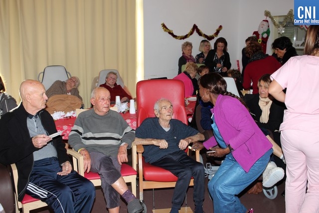 Ange Santini, Maire de Calvi a partagé cet instant avec les pensionnaires, tout comme Françoise Sévéon, adjointe déléguée aux affaires sociales, Catherine Langlade, directrice du Centre Hospitalier, "Babette" Munier , conseillère municipale, Laurent Guerini, conseiller municipal, Jeanine Maraninchi, responsable de l'Antenne Balagne de la Ligue contre le cancer, Mme Seguy, épouse de Jérôme Seguy, sous-préfet de Calvi,