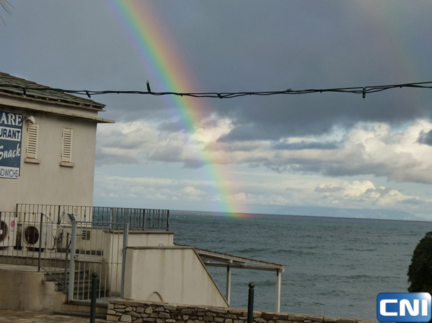Certes, tout le monde sait cela : un arc-en-ciel est un phénomène optique et météorologique qui rend visible le spectre continu de la lumière du ciel quand le soleil brille pendant la pluie. C'est un arc coloré avec le rouge à l'extérieur et le violet à l'intérieur. Mais quand il vous saute comme cela aux yeux, entre soleil et pluie, il fait réagir n'importe quel photographe. En tout cas il était beau à regarder ce mercredi depuis la Pertica, qui surplombe Miomu, jusqu'à la mer entre Cap Corse et Ile d'Elbe où il semblait se ressourcer… Qu'en pensez-vous ?