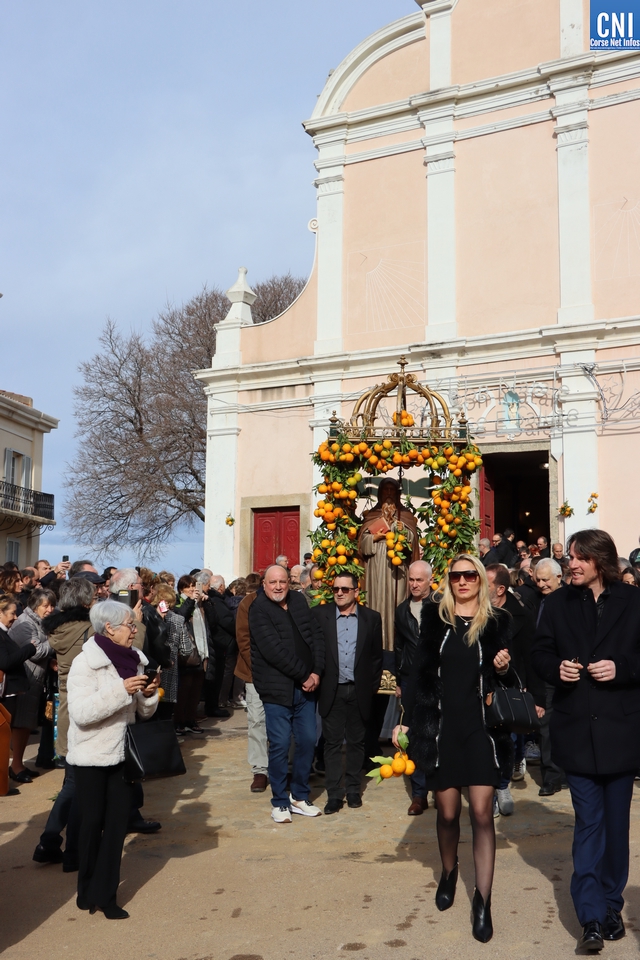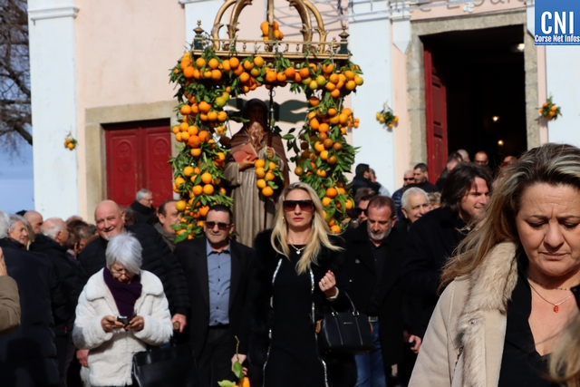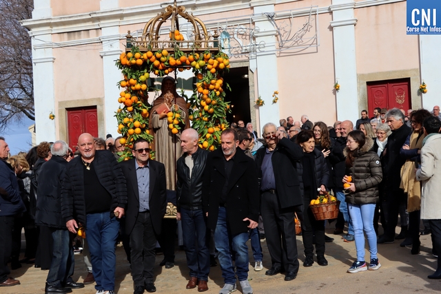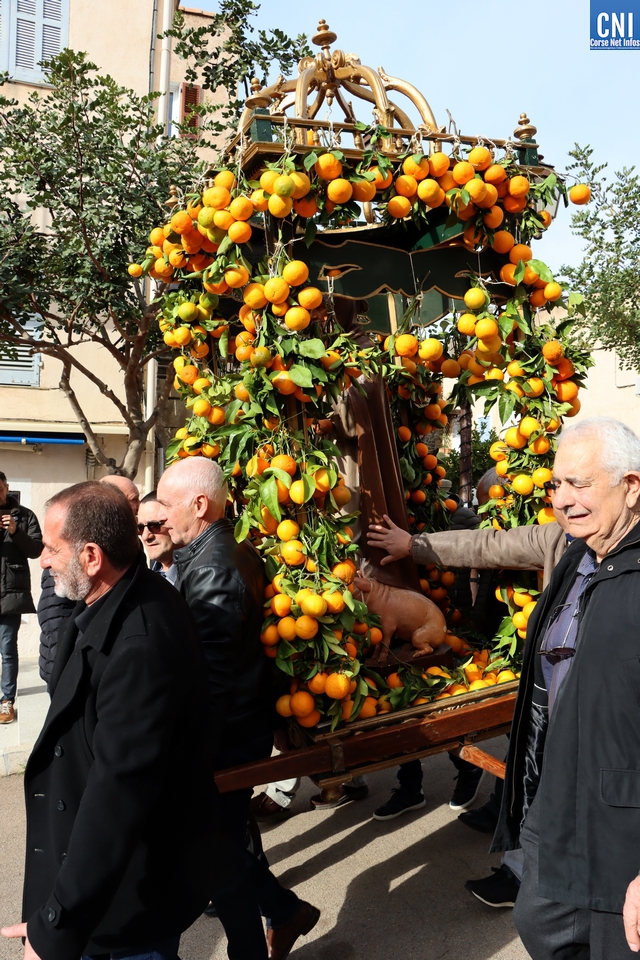 A l'issue de la messe, avec des oranges dans la main ou dans des petits paniers, les femmes et les confrères précédaient la procession, alors que Saint Antoine orné d'oranges était porté par des gens du village et que des haltes éraient effectuées pour procéder à une bénédiction aux quatre points cardinaux.