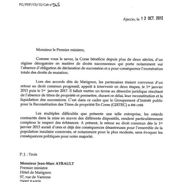 1. la nécessité, non moins grande, de donner une plus grande impulsion au règlement de la situation juridique du patrimoine immobilier : celle-ci est affectée depuis très longtemps de désordres ayant largement dépassé un niveau critique (l’indivision, l’absence de titres authentiques de propriété, l’insuffisante actualisation des rôles de la propriété foncière, les graves lacunes du cadastre) ; elle n’a été que très partiellement normalisée malgré les dispositions prises depuis plus de vingt ans par les pouvoirs publics et notamment dans le cadre de la loi n° 2002-92 du 22 janvier 2002 relative à la Corse dont les mesures d’incitation liées à la fiscalité des successions s’éteindront progressivement du 1er janvier 2013 au 31 décembre 2017, alors même qu’il faudra près de vingt années au groupement d’intérêt public GIRTEC pour venir à bout de l’entreprise de reconstitution des titres de propriété engagée en 2009 ;