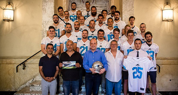 I Guerrieri d'Ajaccio, champions d'Italie de football américain, à l'hôtel de ville