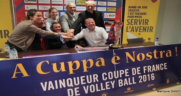 La fête était Place Foch ce lundi soir à Ajaccio pour célébrer encore une fois la victoire du GFC Ajaccio volley-ball, celle-là même qui lui fit remporter la coupe de France un dimanche 27 mars contre Rennes. Laurent Marcangeli député-maire de la ville...