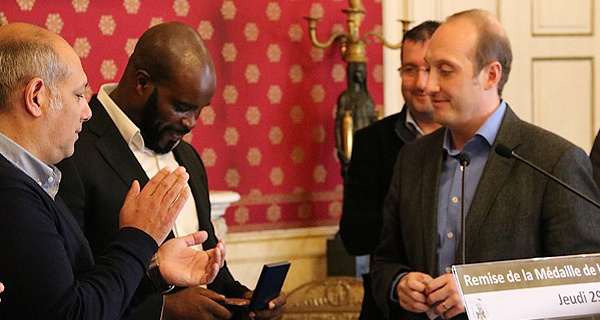 Un champion du monde de boxe dans les Salons Napoléoniens : La médaille de la ville à Jean-Marc Mormeck