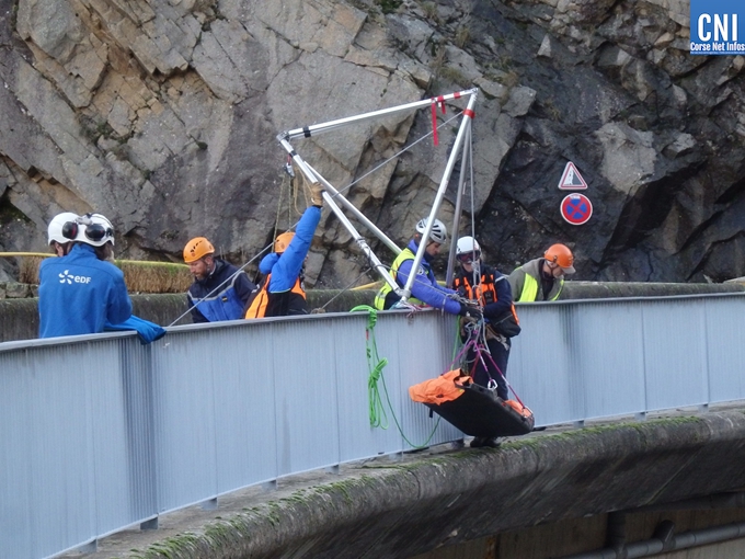 Cyril Llorens, chef du groupement hydraulique Ocana-Rizzanese, a rappelé que l’opération a fait l’objet en parallèle d’un exercice de sauvetage d’un blessé encordé réalisé par le PGHM avec les entreprises prestataires et l’équipe hydraulique d’Ocana dans le cadre de la démarche de prévention santé sécurité d’EDF Corse et à l'heure des remerciements il a englobé les 16 agents de l’équipe hydraulique d’Ocana et les deux entreprises locales Peretti et Apex pour l’expertise et la technicité qu’elles ont su apporter à ce chantier de sécurisation avec des intervenants spécialisés dans les travaux sur cordes.