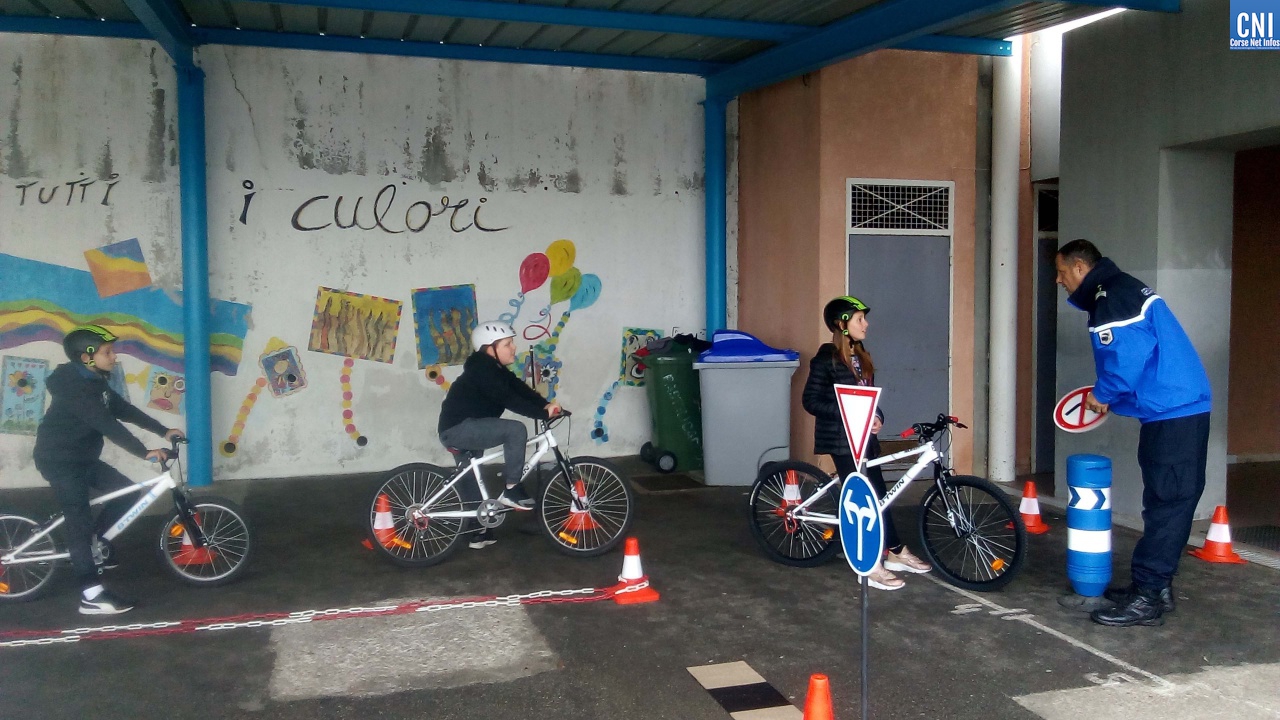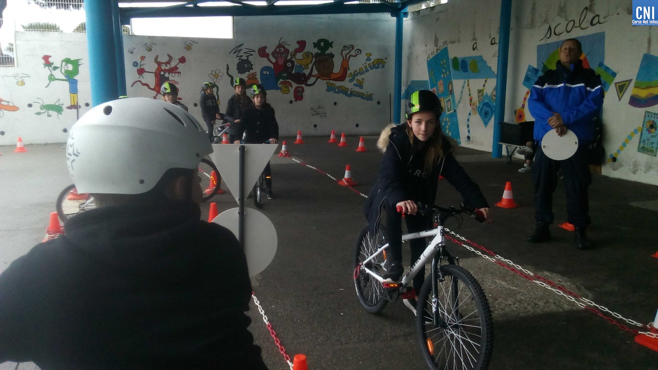 Après une première partie de cours théorique le matin (règles de circulation et signalisation), les élèves ont mis en pratique, l'après-midi, les connaissances sur un vélo.