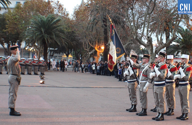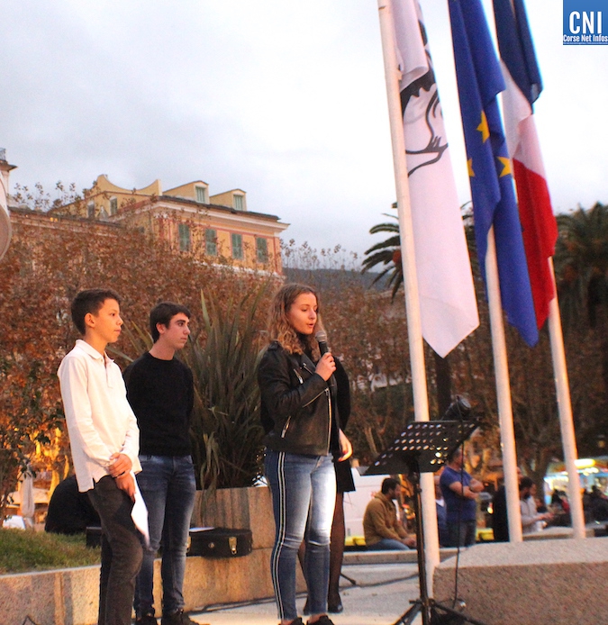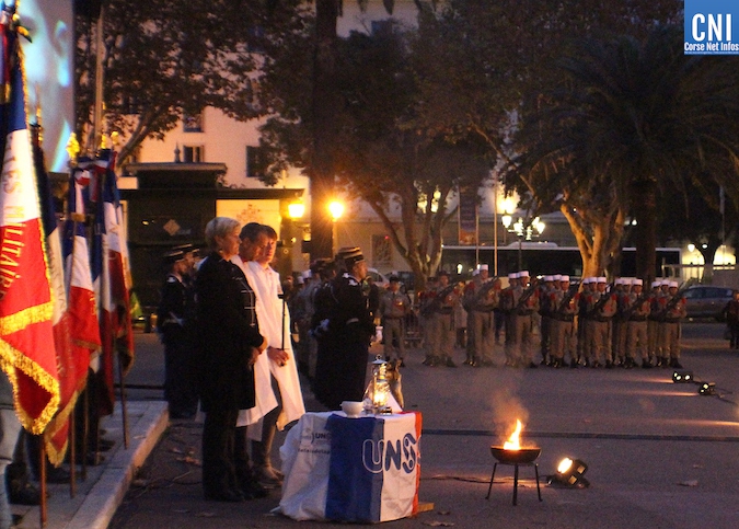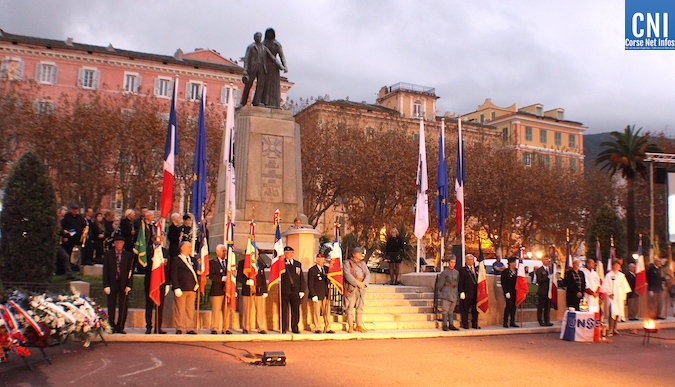 La cérémonie a débuté après l'arrivée de la Flamme du Soldat Inconnu portée par les élèves de l'UNSS de Haute-Corse sur la place Saint-Nicolas.