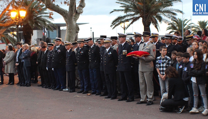 La célébration du centenaire de l'Armistice s'est poursuivie avec des dépôts de gerbe plus nombreux qu'à l'accoutumée, de l'association nationale des officiers de réserve de l'armée de l'Air, des marins et des marins anciens combattants de Bastia et du Cap, de l'union nationale des sous-officiers de réserve, du Souvenir Français et du consulat du Maroc, des Veuves de Guerre et de l'union nationale des combattants, de l'amicale du 173e RI, de l'ordre national du Mérite et des troupes de Marine, du délégué militaire départemental qui ont précédé celui effectué par Pierre Savelli, le maire de Bastia, par Jean-Guy Talamoni, par Gilles Simeoni, par Michel Castellani et par le préfet de Haute-Corse.