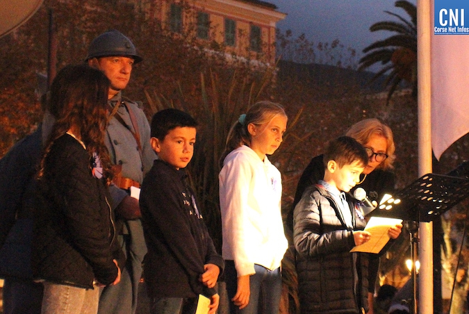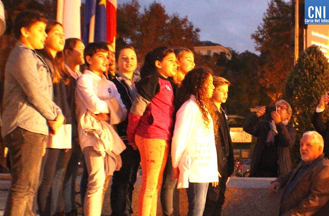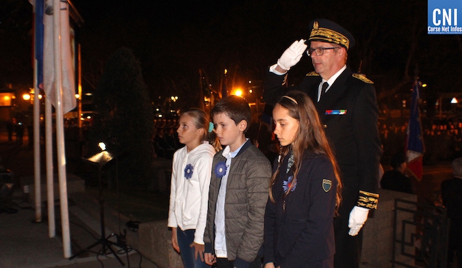 Les élèves de l'école primaire Desanti ont apporté leur contribution à la cérémonie en interprétant "Veni o bella" puis le préfet de Haute-Corse Gérard Gavory a clos la première partie de la cérémonie en lisant le message du président de la République puis en citant le nom des militaires morts pour la France en 2018.
