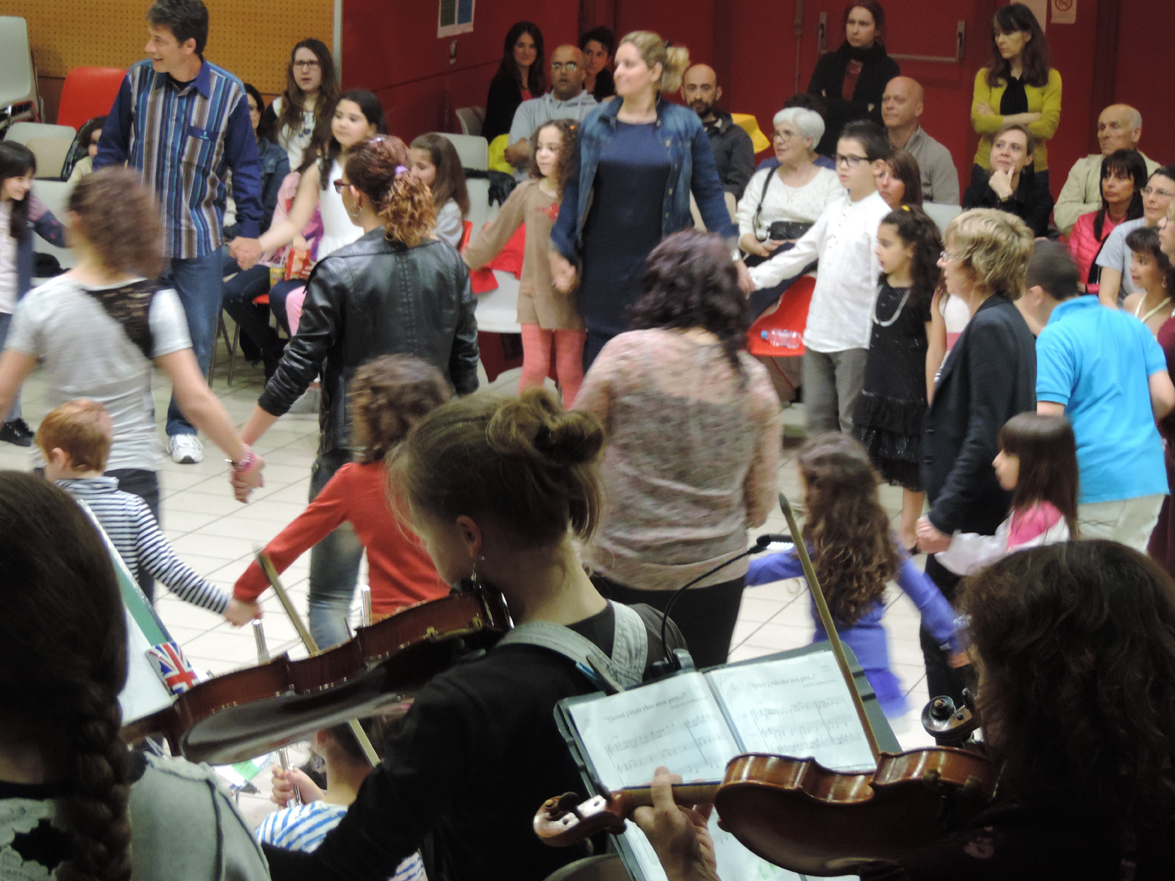 « Notre association a déjà vingt ans d’existence en Corse ! Notre objectif est d’amener les jeunes à connaître les bals traditionnels et à y prendre goût ; nous sensibilisons à la pratique de la danse par tous. Ce type d’évènement est également très formateur pour les musiciens, au niveau de l’oreille, de la compréhension de la phrase musicale. On amène les musiciens à danser ; une fois qu’ils ont ressenti le rythme avec leur corps, la musique n’est plus vécue comme quelque chose d’uniquement intellectuel » explique Christine Vignoud à la direction musicale. Musique corse, mais aussi de Suède, d’Italie, de Bretagne, d’Israël ou encore de Roumanie ont été portées sur scène, dans une formidable coordination entre danseurs et musiciens.