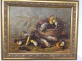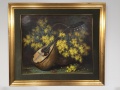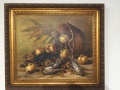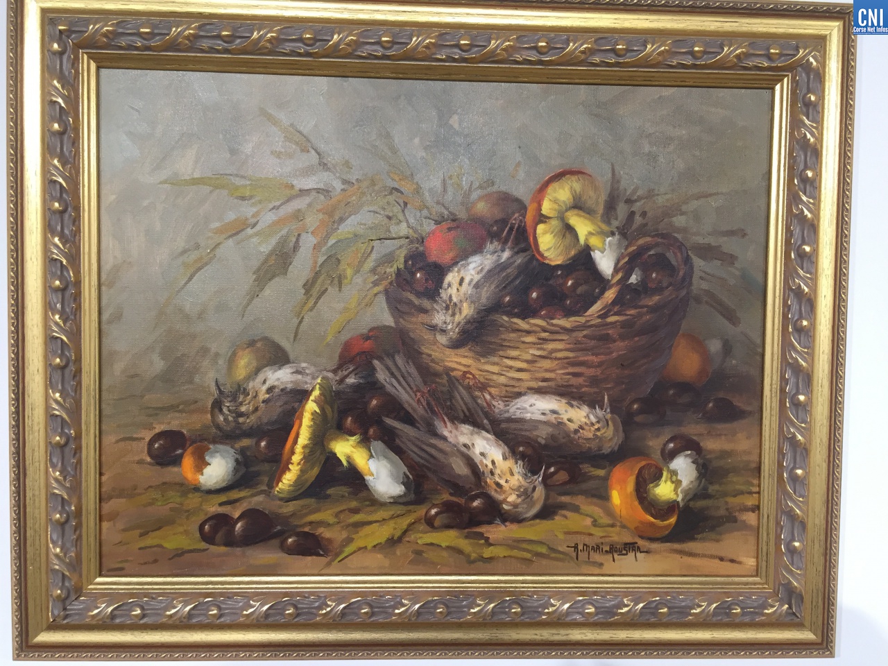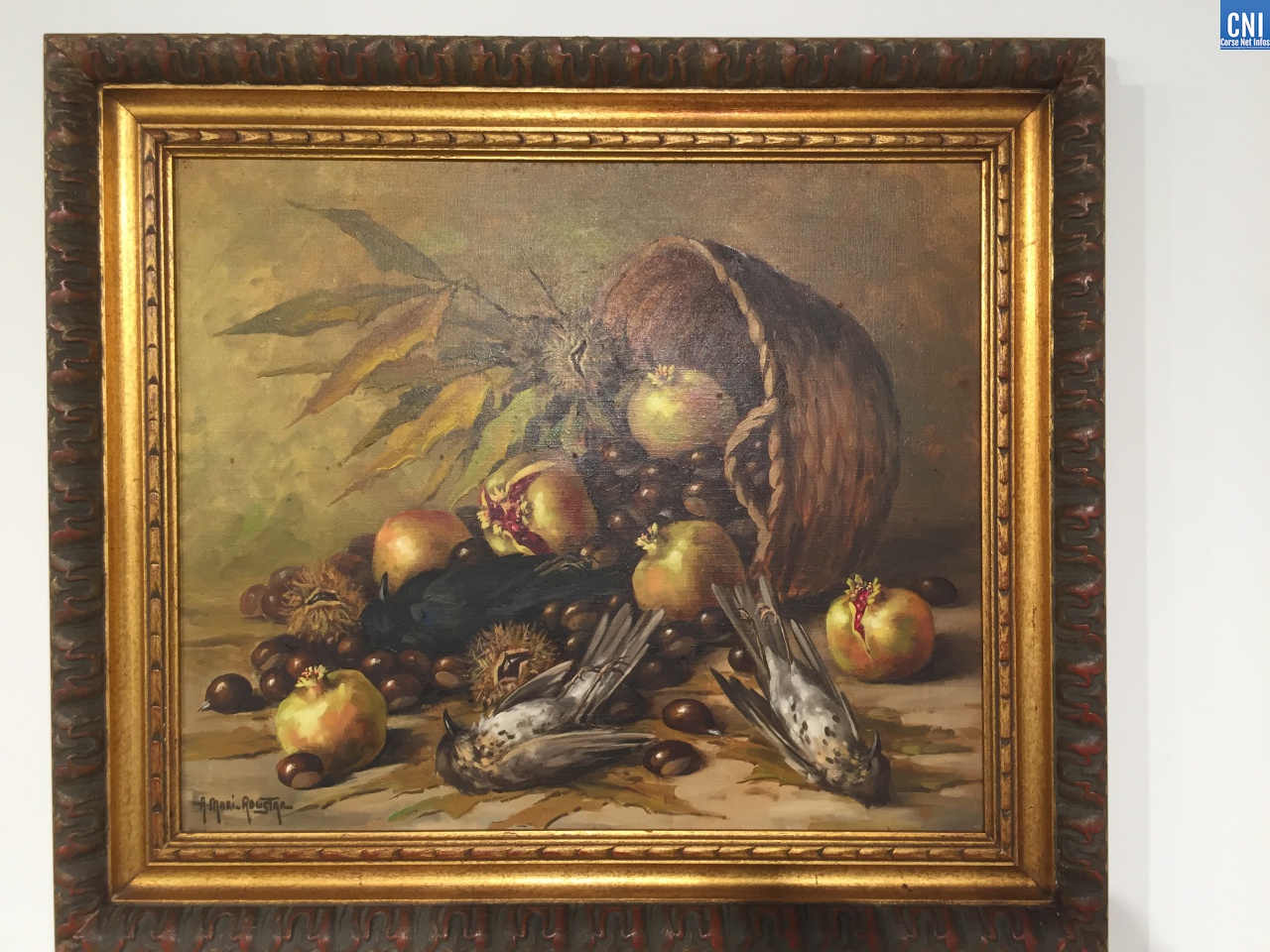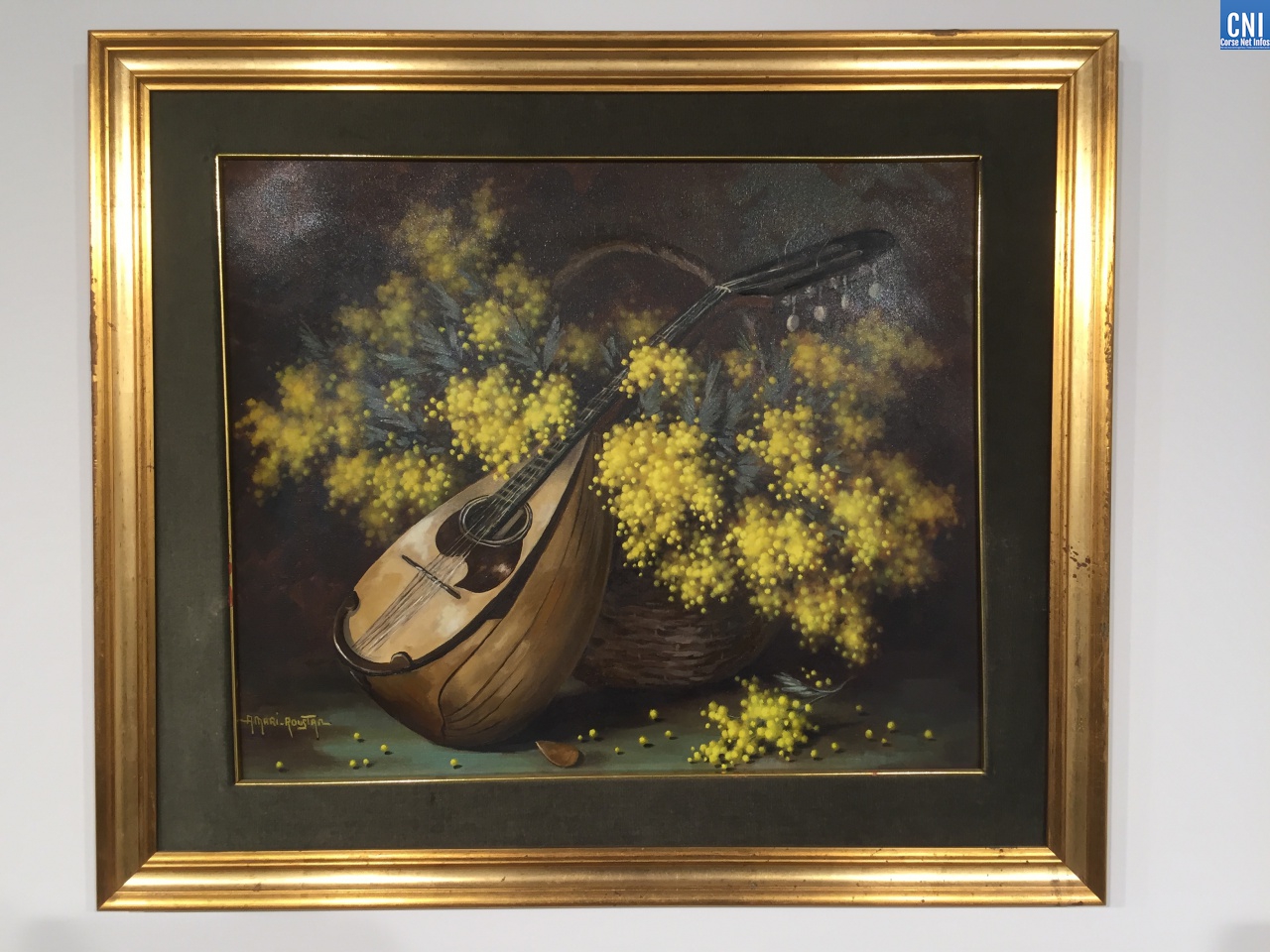 - «Oui, comme je vous le disais, ma mère peignait beaucoup de paysages quand nous partions camper. Elle avait une sorte de boulimie des paysages corses. Les natures mortes sont plus récentes et datent des années 80 et 90. Ma mère, plus âgée, sortait moins. Elle peignait alors, assise, des mimosas, des fleurs mais aussi le produit de chasse des chasseurs qui venaient la voir exprès avec leurs trophées».